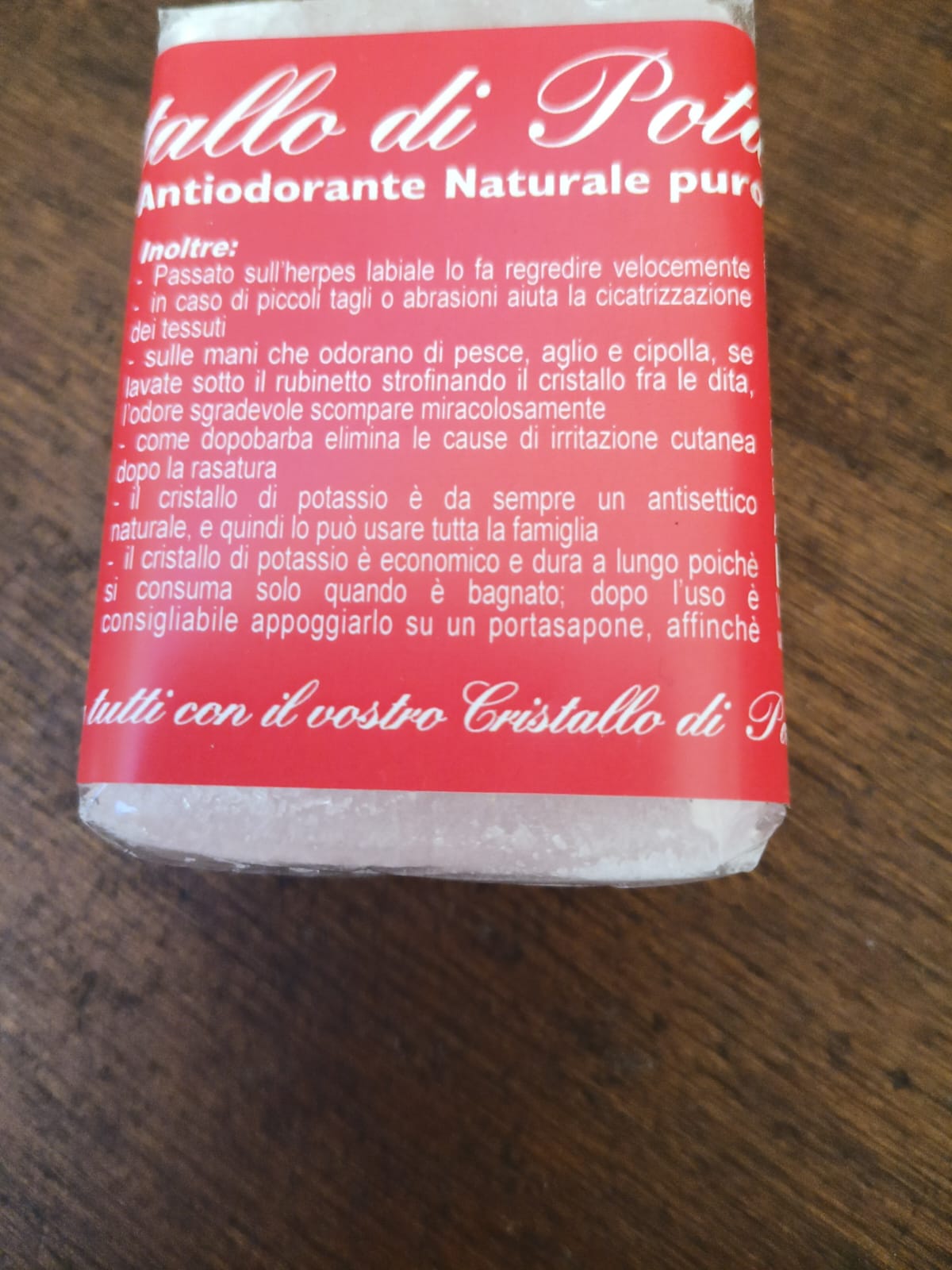 INUMIDIRE IL CRISTALLO E PASSARLO SULLA PELLE PULITA(ASCELLE E PIEDI) PER 24 ORE EVITA LA FORMAZIONE DEI BATTERI E DI CONSEGUENZA DEI CATTIVI ODORI